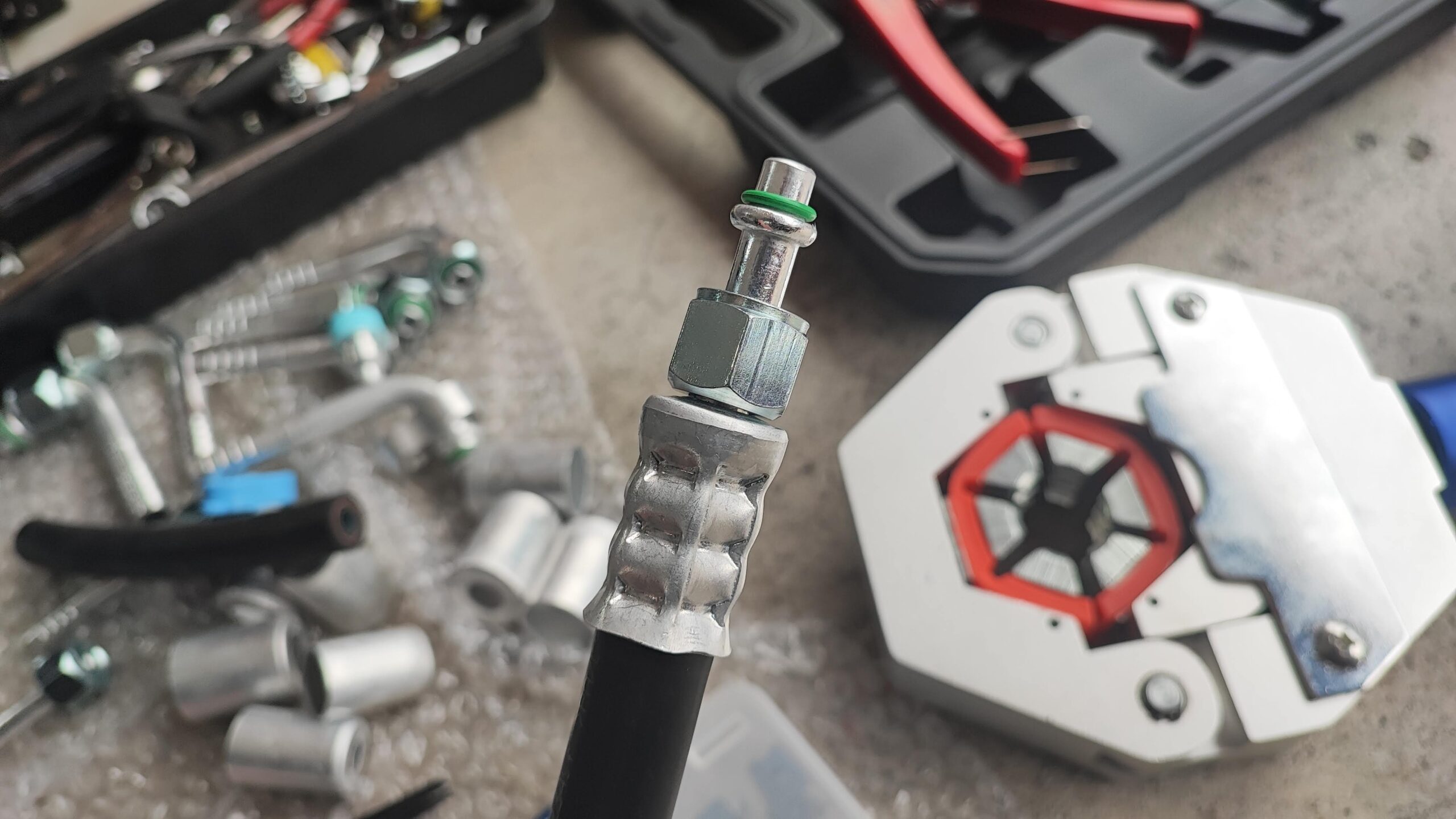- 冷媒ガス配管は油圧圧着工具でしっかり施工します