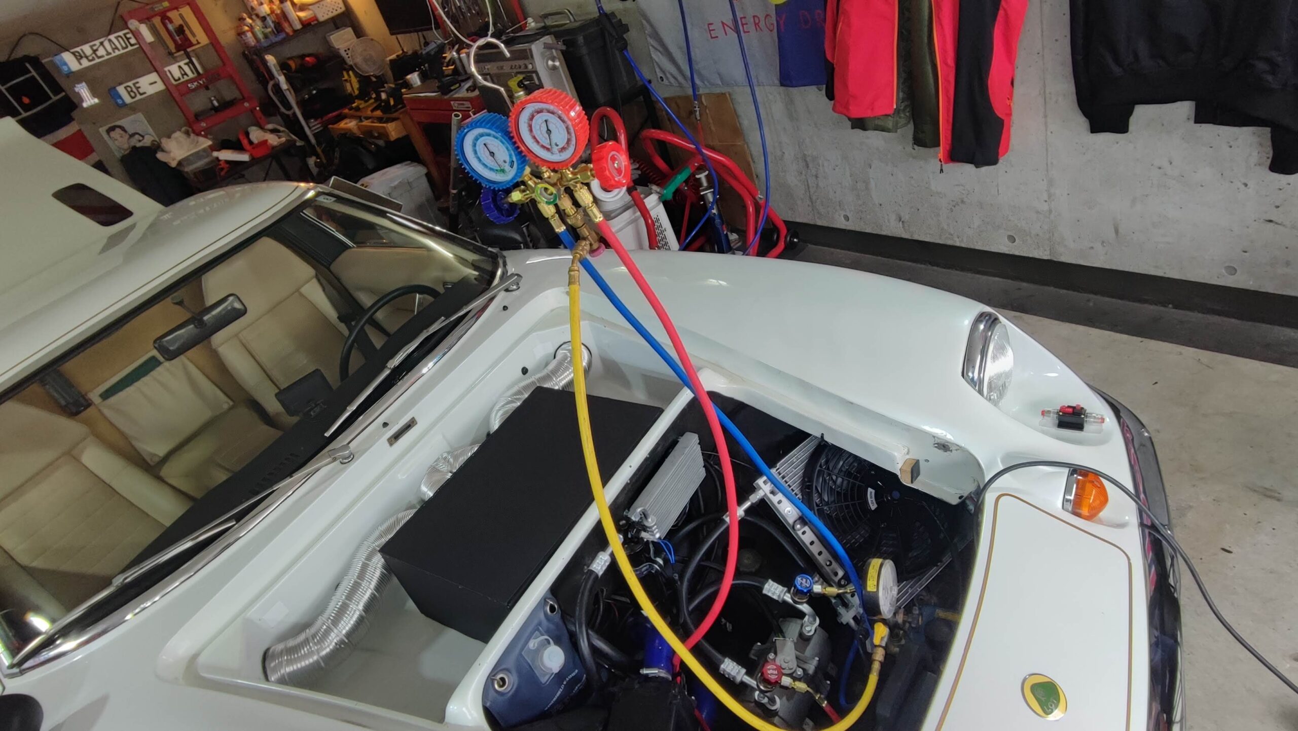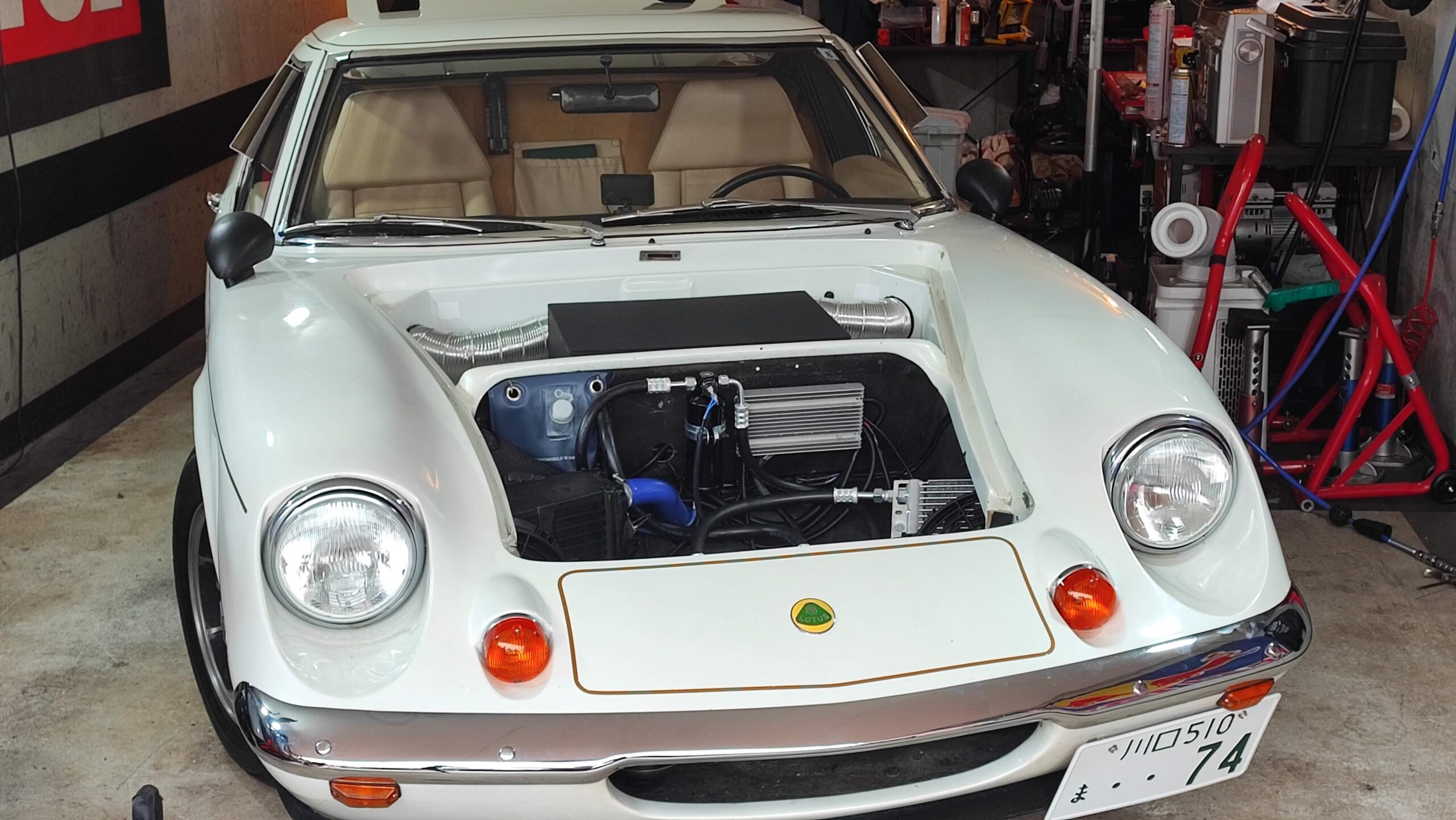 そんな気持ちから始めたのが、電動エアコン(実際はクーラー)をなんとかDIYで載せてみよう計画です。今回は、1973年式のロータスヨーロッパ・スペシャルに新郷ガレージで実装していきましょう。