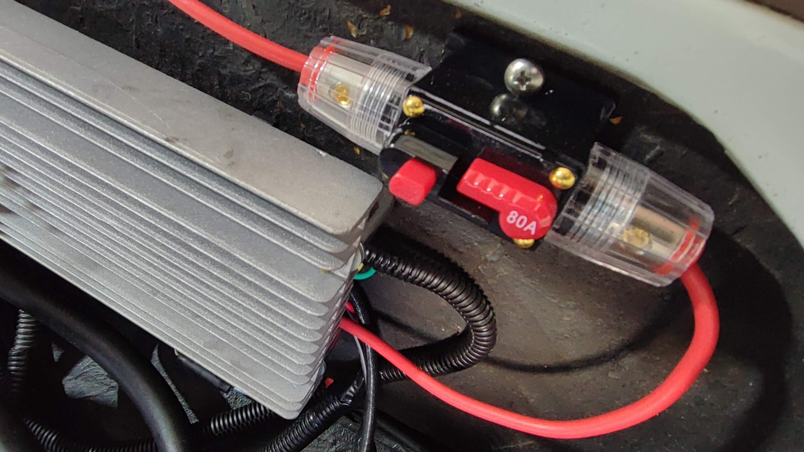 それから、配線も60A程度は対応していないと危険なので、こちらも余裕をみて8SQケーブルを80Aインラインヒューズを介してバッテリーから新規で配線します。なにより安全設計です