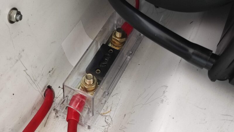 それから、配線も60A程度は対応していないと危険なので、こちらも余裕をみて8SQケーブルを80Aインラインヒューズを介してバッテリーから新規で配線します。なにより安全設計です